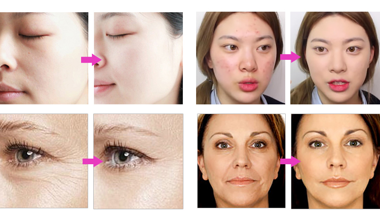 1.Eliminate acne. 2.Alleviate acne scar. 3.Whiten and rejuvenate skin. 4.Remove yellow spots. 5.Stimulate collagen regeneration. 6.Remove wrinkle.