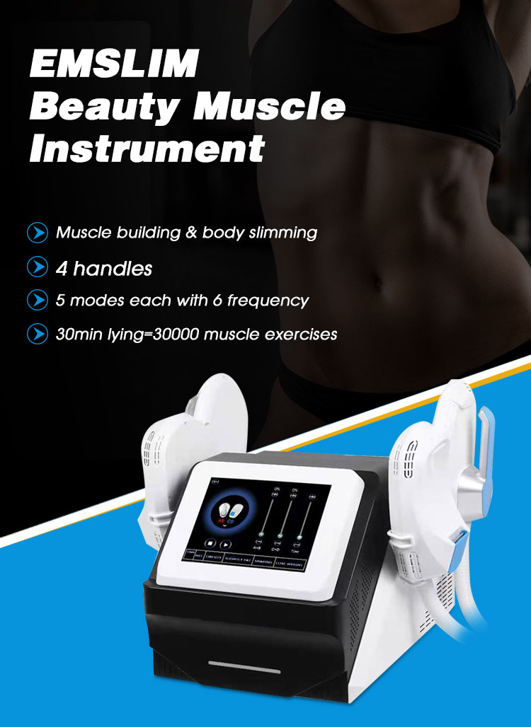 Its uses non-invasive high-intensity focused magnetic vibration (HIEMT) technology to release high-frequency magnetic vibration energy through two large treatment handles to penetrate the muscle tissue to a depth of 8cm, and induce continuous expansion and contraction of muscles to achieve high-frequency extreme training , To deepen the growth of my fibril (muscle enlargement), and produce new collagen chains and muscle fibers (muscle hyperglycemia), thereby training and increasing muscle density and volume.