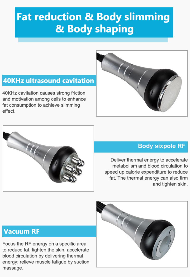 | Product Name | 5 in 1 Ultrasonic Cavitation Lipo RF Fat Burning Machine Dissolve Cellulite Vacuum | ||