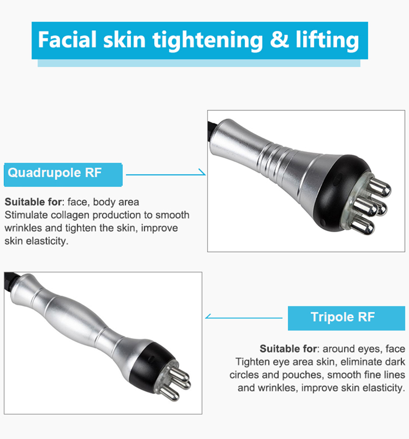 7). 5 treatment handpieces—— can be used for eye area, facial and body treatment for fat reduction and skin tightening.