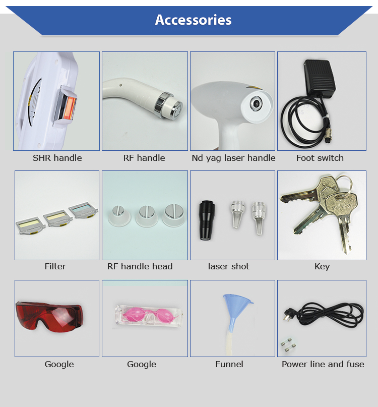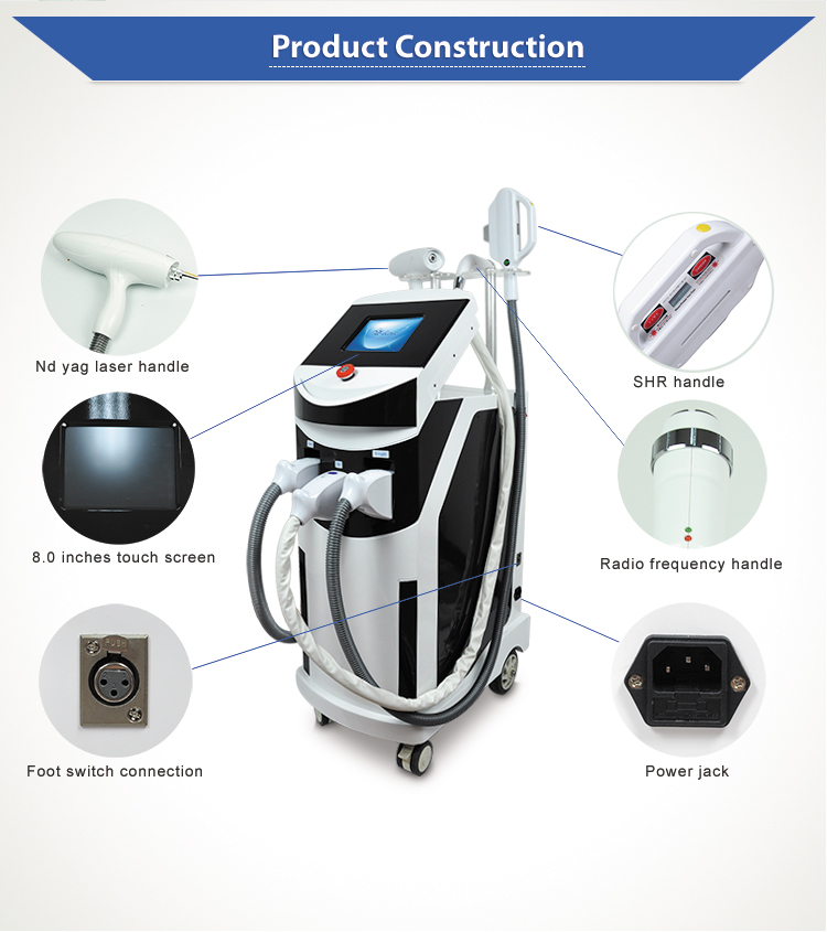 | Description | Multi-functional beauty salon equipment laser IPL RF for hair removal tattoo removal |