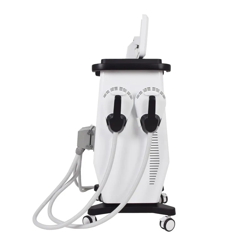 1.Dual effects —— achieving muscle building and body slimming effectively. 2.Safe and easy —— no knife, injection, medicine, current, radiation, exercise, diet, pain, side effect or recovery period. 3.Time & effort saving —— lying down for 30 minutes = 30000 times of muscle contraction = 30000 times of sit ups / squats. 4.Quick & remarkable results —— a course of treatment can effectively increase muscle by 16% and reduce fat by 19%. 5.Multi-applicable positions —— precise treatment on abs, arm, shoulder, leg or hips, etc. 6.5 modes each with 12 frequency —— adjust the output frequency according to individual needs. 7.Four handles —— operating simultaneously and effectively, suitable for men & women. 8.Strong cooling system —— greatly improves the stability of energy output.