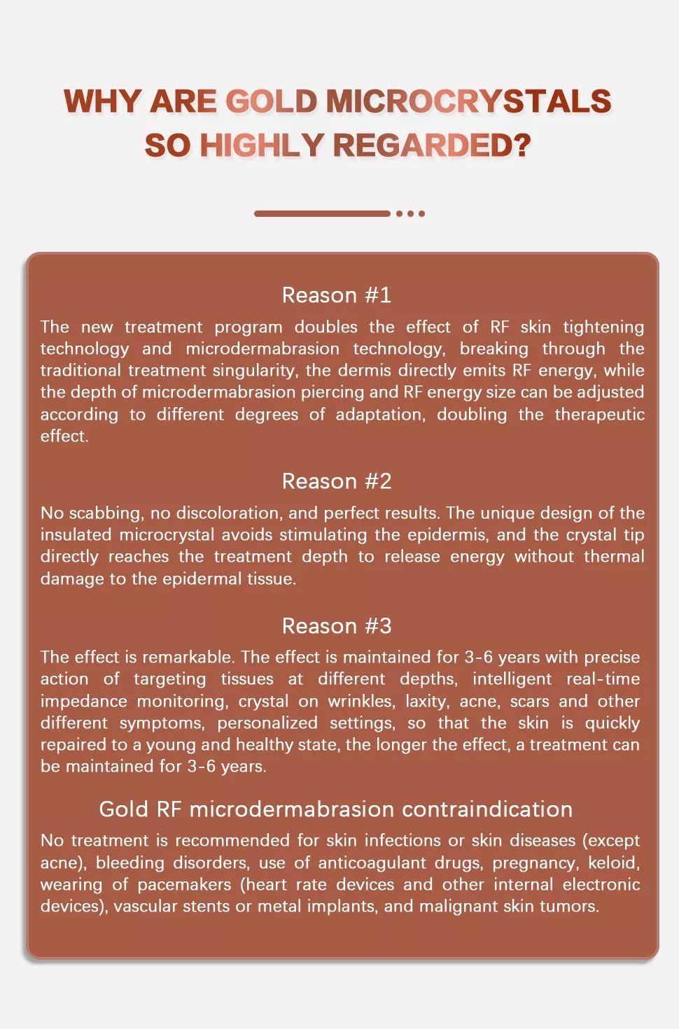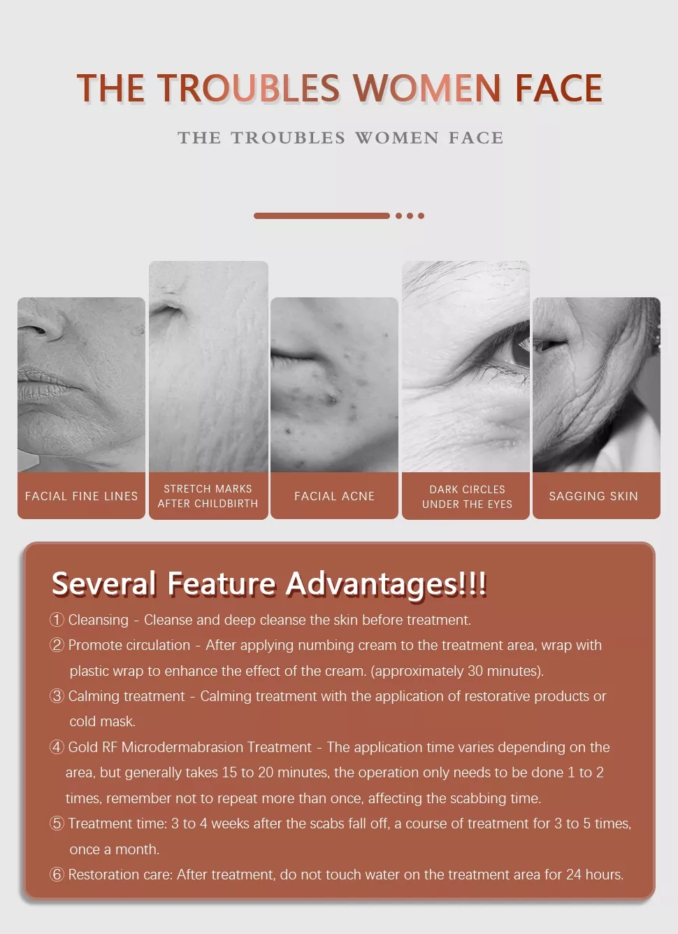 3.Gold RF micro-crystal caring-the care time is different according to the part but generally need 15-20 minutes.