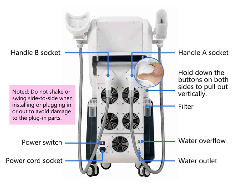 3. Vacuum: auxiliary for fat freezing treatment, with automatic suction and release to suck out fat meanwhile performing physical massage to dredge meridians and promote blood circulation.