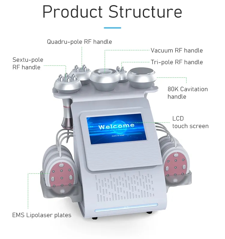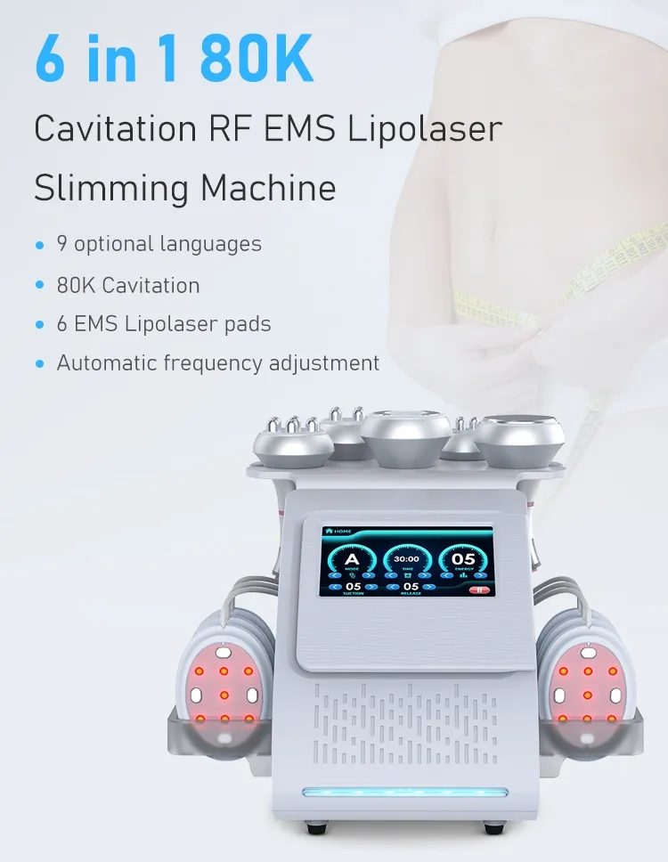 80K Cavitation, vacuum RF, multi-pole RF, EMS, lipo laser |