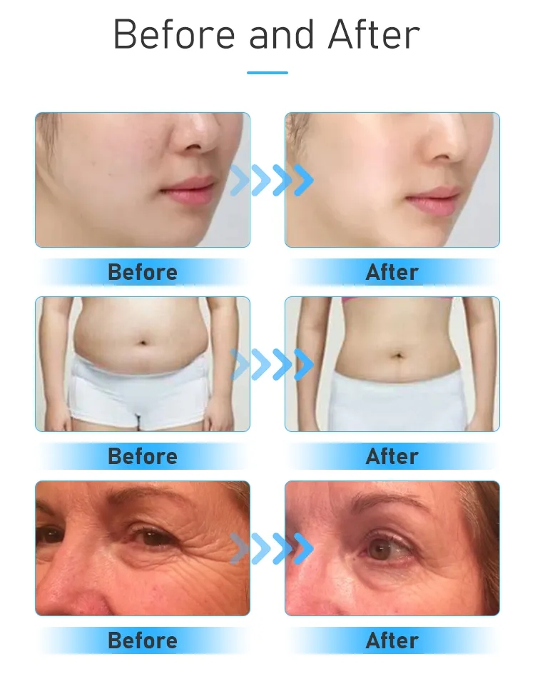 80K Cavitation: Based on the use of low-frequency ultrasound waves, it creates a phenomenon called "cavitation" in the body. Cavitation occurs when the ultrasound waves cause the formation and implosion of tiny bubbles in the liquid surrounding the fat cells, causing them to break apart. It can be effective for reducing the appearance of cellulite, toning and firming the skin, and reducing the circumference of treated areas.