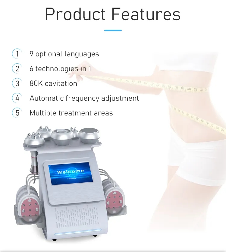 2. 6 technologies in 1—— Cavitation, vacuum RF, multi-pole RF, BIO, Lipo laser, LED light therapy