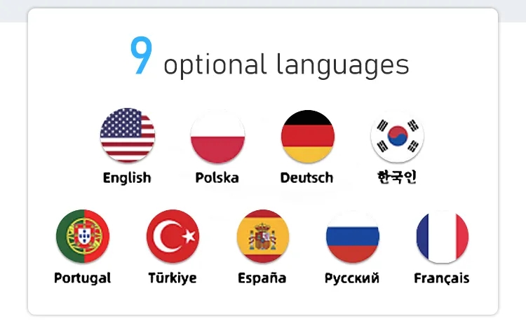 1. 9 optional languages—— suitable for different languages clients