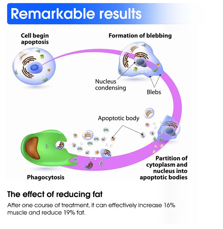 1. Good result —— 30 minutes treatment= 20000 workouts, increase 16% muscle and reduce 21% fat after about 2-4 courses