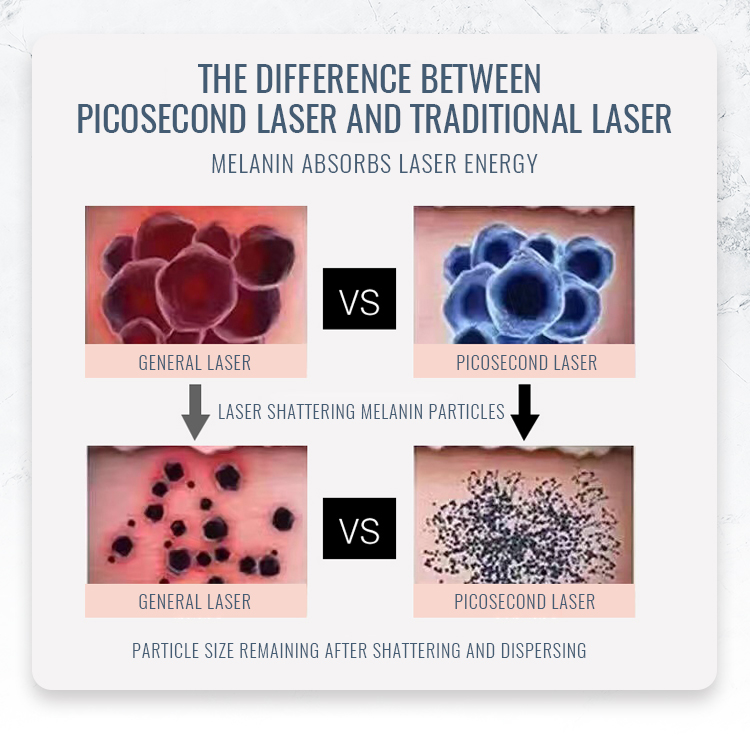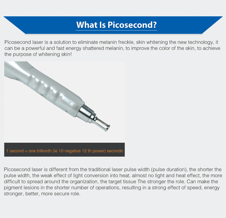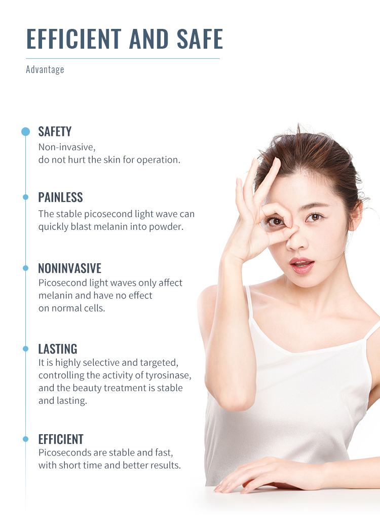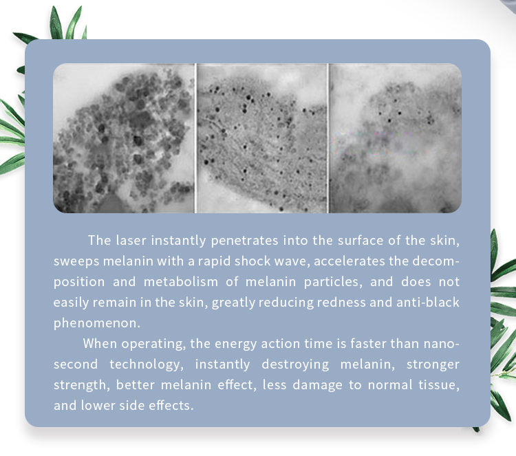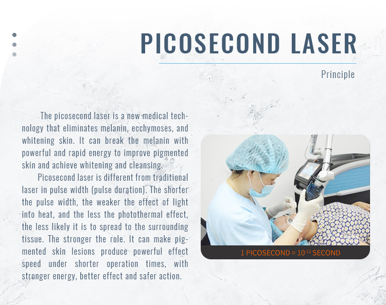 Picosecond laser is a new technology for pigment removal and skin whitening, with a powerful and fast energy to shatter the pigment directly, remove pigmentation skin and achieve whitening skin.