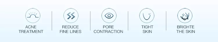 1.Eliminate acne. 2.Alleviate acne scar. 3.Whiten and rejuvenate skin. 4.Remove yellow spots. 5.Stimulate collagen regeneration. 6.Remove wrinkle.
