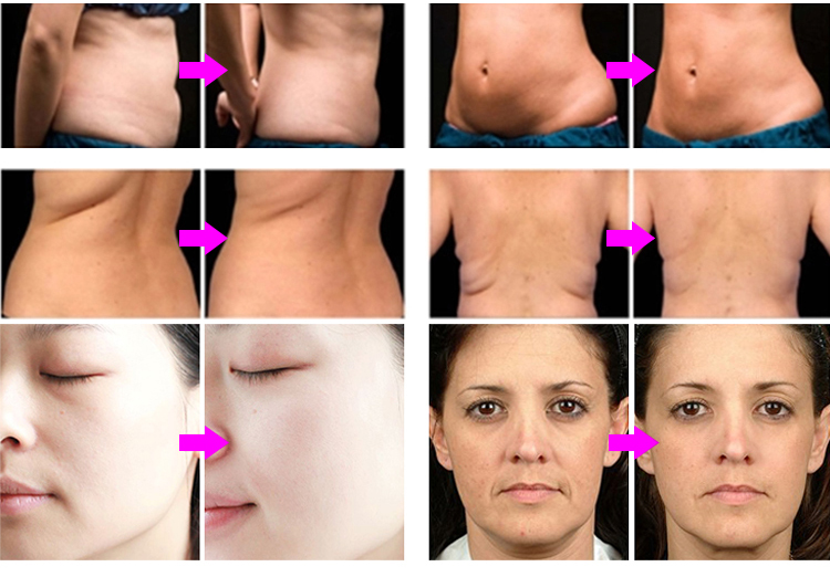 Focused single-stage radio frequency can quickly and effectively break down ternary helical structure of collagen fibers, while the natural healing process stimulates fibroblasts to produce new collagen fibers, so as to tighten skin and reduce wrinkles. RF energy can also be efficiently transferred to adipose tissue, generating heat to accelerate fat decomposition so as to reduce local fat, while advanced cooling technology greatly improves treatment comfort.