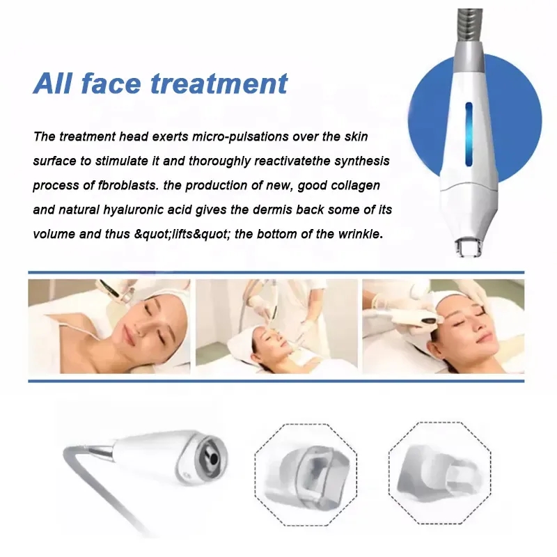 Facial Beauty and Anti-aging: Through facial operation head, it can revitalize human fibroblasts to generate collagen, elastic fibers, hyaluronic acid and other substances, and restore skin vitality; Can solve the facial skin yellowish dull, contour is not clear, lack of elasticity, skin slack, wrinkles, double chin, and facial depression.