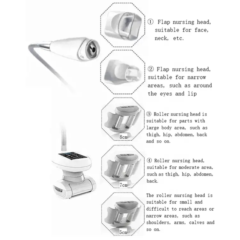 Vera roller Tester adopts "Three-dimensional Negative Pressure Mechanical Stimulation" technology, which is a non-invasive vacuum negative pressure massage therapy. The principle is that through the bidirectional electric roller combined with vacuum negative pressure of the nursing head device, and the electric flap combined with vacuum negative pressure of the nursing head device, the skin tissue to carry out rolling, suction, kneading, clamping, bouncing and other mechanical aerobic exercise, skin tissue repeated deep massage and mechanical stimulation.